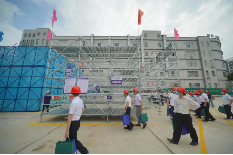 活动最后,来宾们进入“惠州市建筑业高质量发展参观学习活动”的观摩区参观。观摩区搭建了承插型盘扣式钢管架、附着式脚手架、不锈钢模板等新型材料及生产工艺展示区,为众人展示智慧工地平台及安全标准化系列产品。